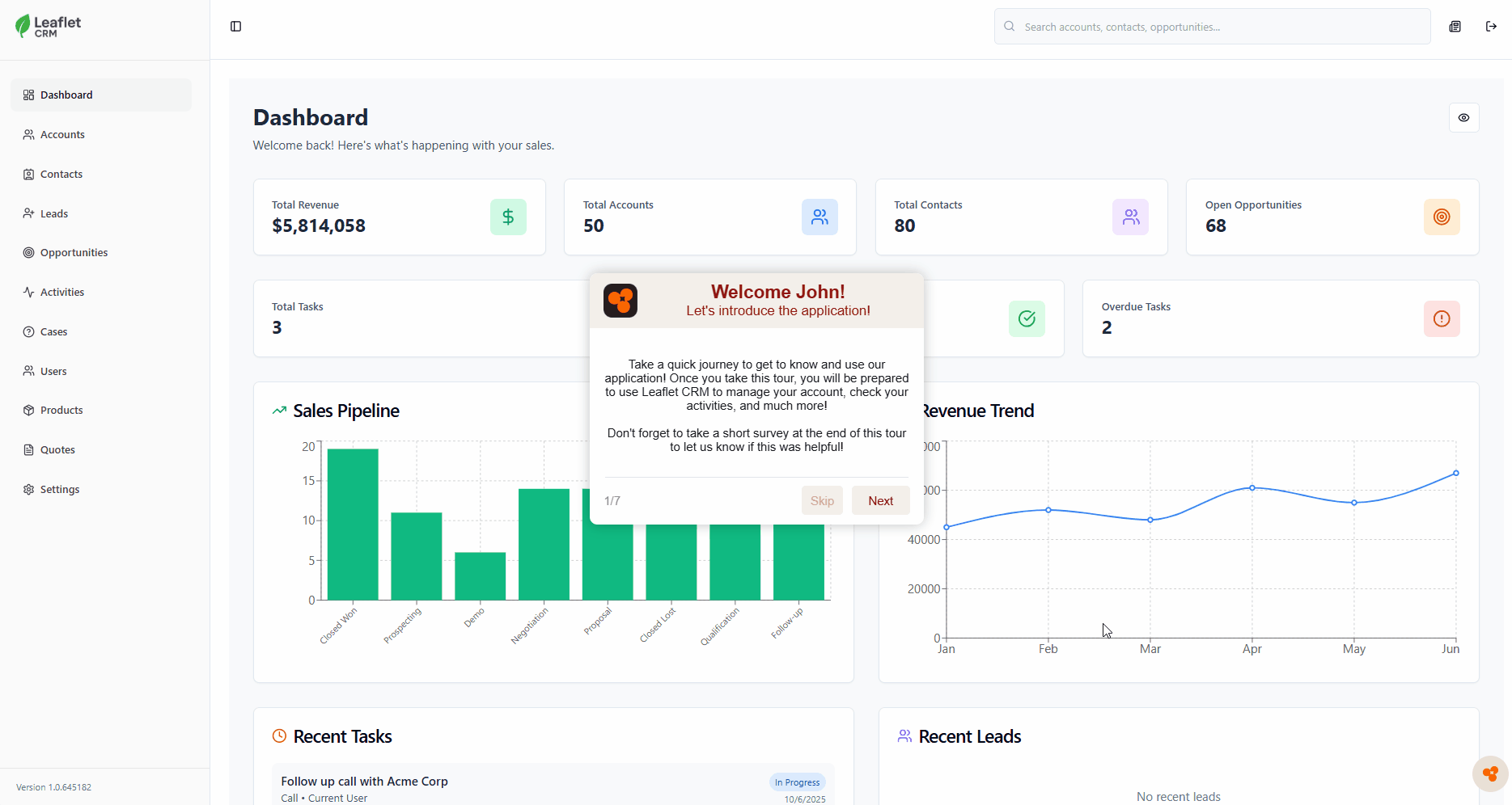 The very first time a user logs into your application is a crucial moment to make sure that your users understand your application and the goals they can achieve when they use it. Tours can aid and even enhance users' first-time experience in your application and guide them to understand it more effectively. This allows them to explore by themselves (guided by a tour!) and empowers them with the knowledge to succeed and get everything they can from your application.