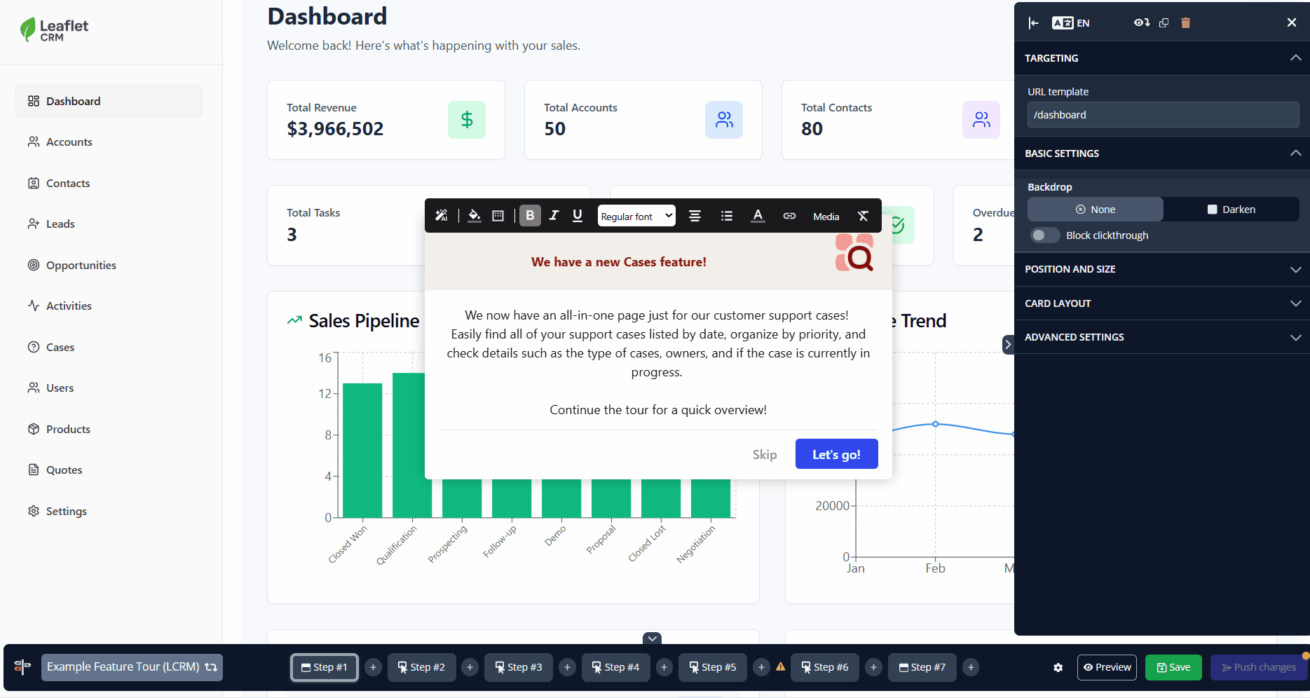 The result? End users get confused, bored, and drop off within the first few steps because the tour is overly complicated, too long, and irrelevant. Meaning all those hours you spent creating and testing this 50-step tour were wasted because most of your users are only viewing the first five steps.